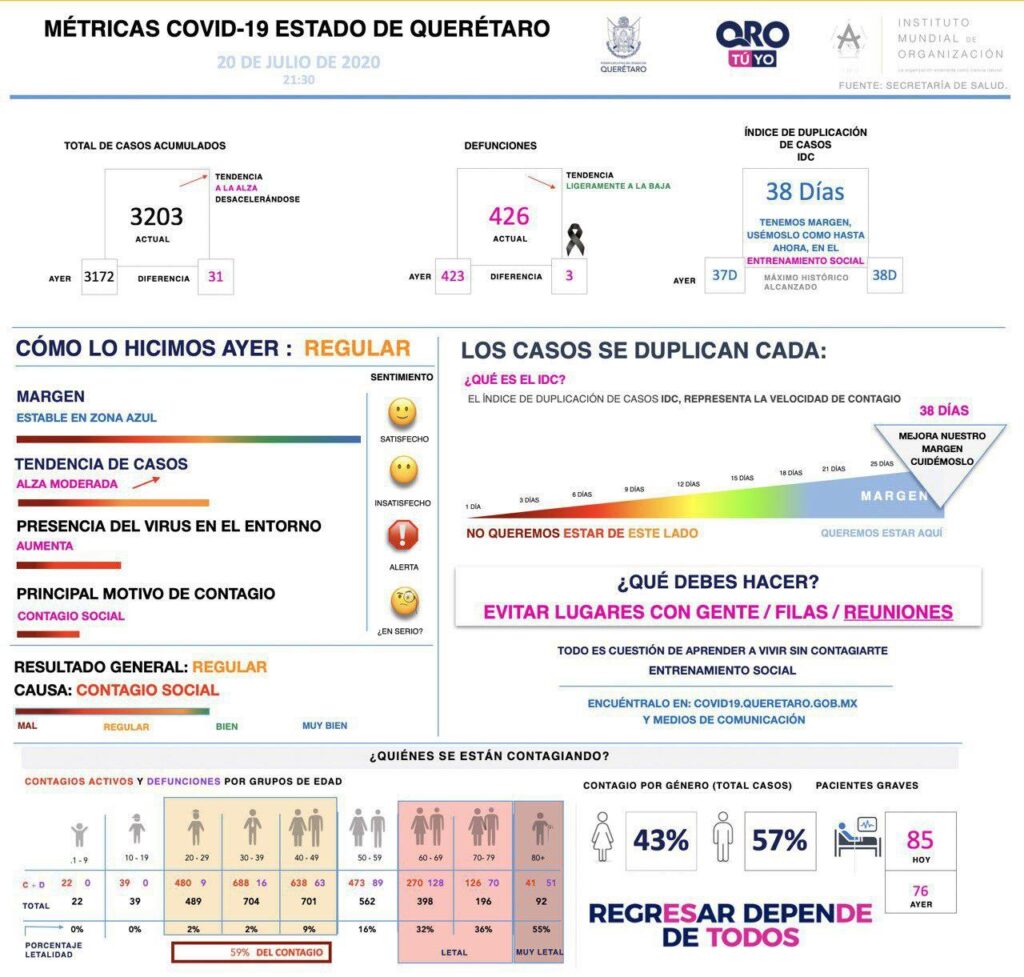 Para atender el tema de COVID-19 se habilitó el call center 442 1015205. A la fecha se han contestado 24 mil 969 llamadas con un promedio de duración de ocho minutos 43 segundos.