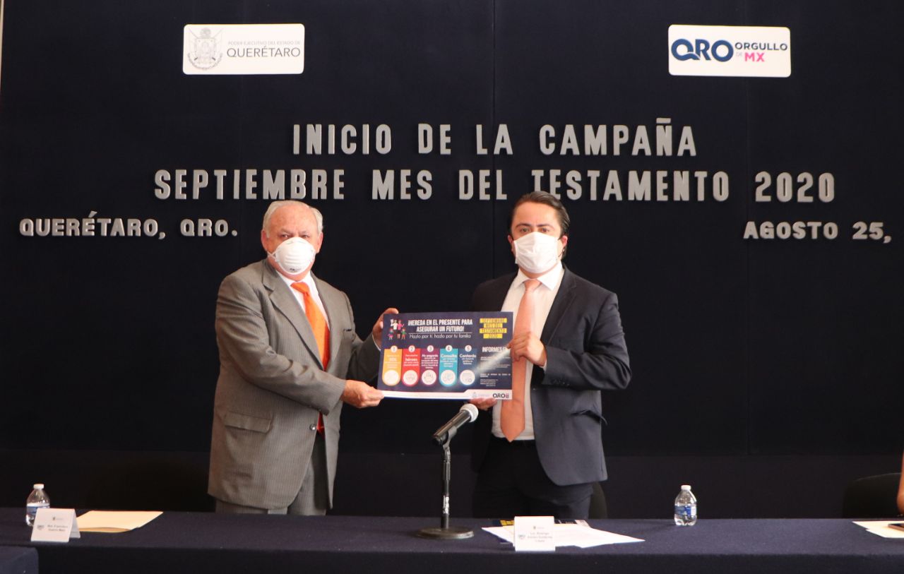 La Secretaría de Gobernación, el Poder Ejecutivo del estado de Querétaro, la Unidad General de Asuntos Jurídicos, el Consejo de Notarios del estado y la Dirección del Archivo General de Notarías, lanzarán la XIX edición de la campaña “Septiembre, mes del testamento”.