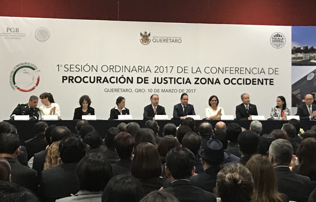 Querétaro, 10 de marzo.- Se realizó en Querétaro la primera sesión ordinaria de la Conferencia de Procuración de Justicia Zona Occidente, encabezada por el Procurador General de la República, Raúl Cervantes Andrade.