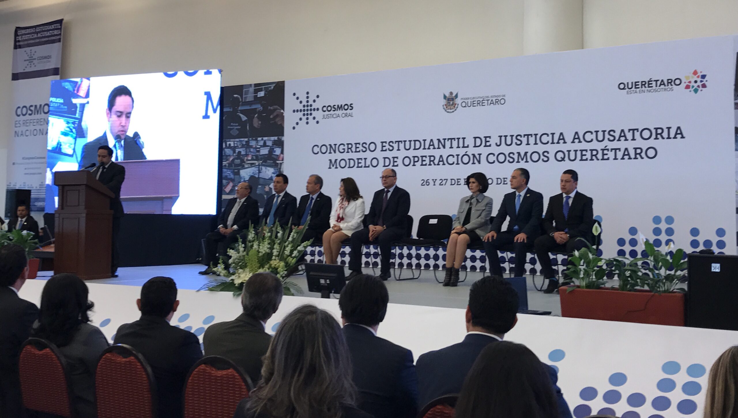 Querétaro, 26 de enero.- Autoridades estatales encabezaron la inauguración del congreso estudiantil de justicia acusatoria «Modelo de operación Cosmos Querétaro», que se realizan los días 26 y 27 de enero en el centro de congresos y convenciones.