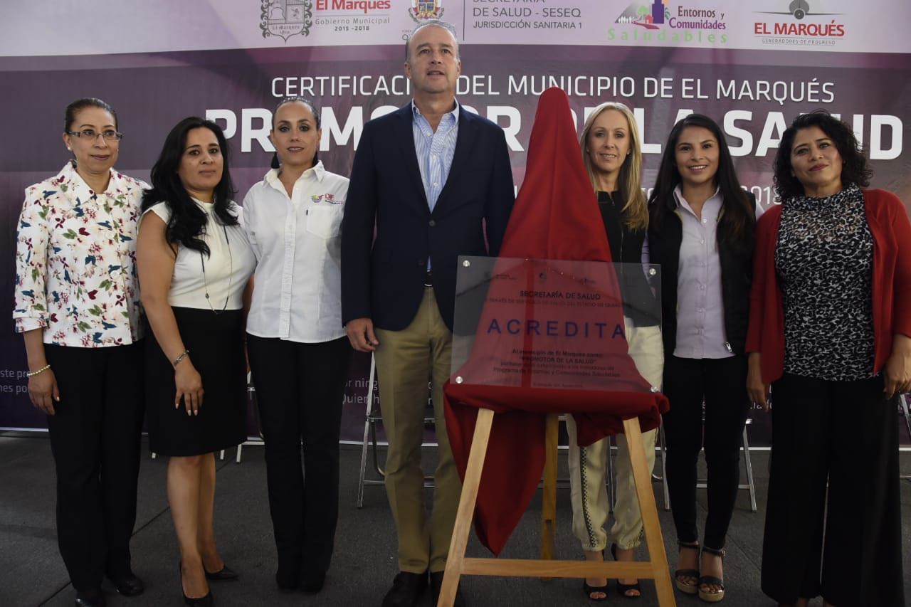 Querétaro, 29 de agosto.- El presidente municipal de El Marqués, Mario Calzada Mercado, recibió el reconocimiento que certifica al municipio como “Promotor de la salud”, luego de haber concluido el cumplimiento de indicadores y la implementación del programa “Entornos y comunidades saludables” de la Secretaría de Salud.