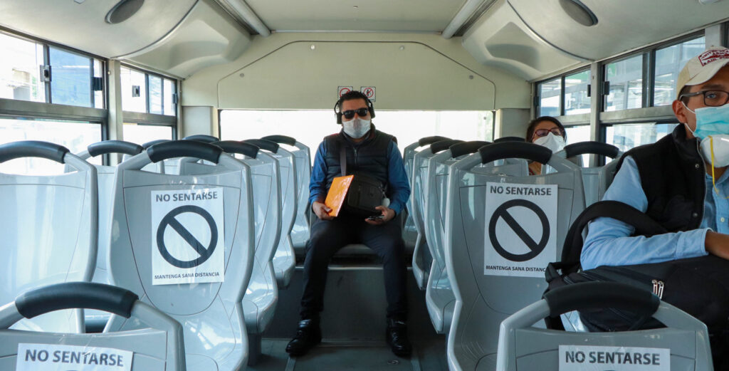 Como primera acción, en el transporte público colectivo se reducirá a 50 por ciento la capacidad de cada unidad. Los asientos disponibles serán aquellos cercanos a las ventanas, mientras que los lugares junto al pasillo estarán marcados con una señalización que restringe su uso, con ello se busca mantener sana distancia dentro de los autobuses.