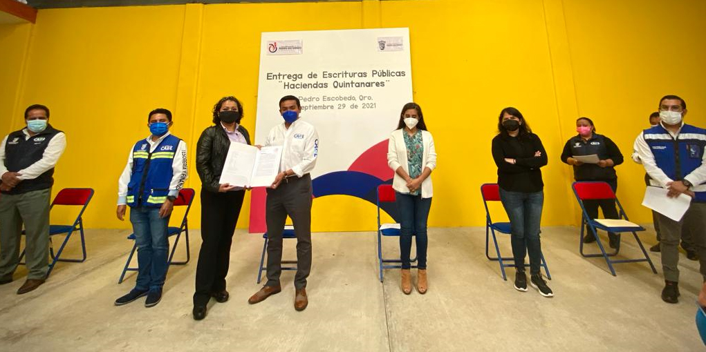 Con el fin de proporcionar el desarrollo territorial ordenado y planeado el presidente Municipal de Pedro Escobedo, Amarildo Bárcenas, hizo entrega de escrituras en el asentamiento humano denominado “Haciendas de Quintanares”.