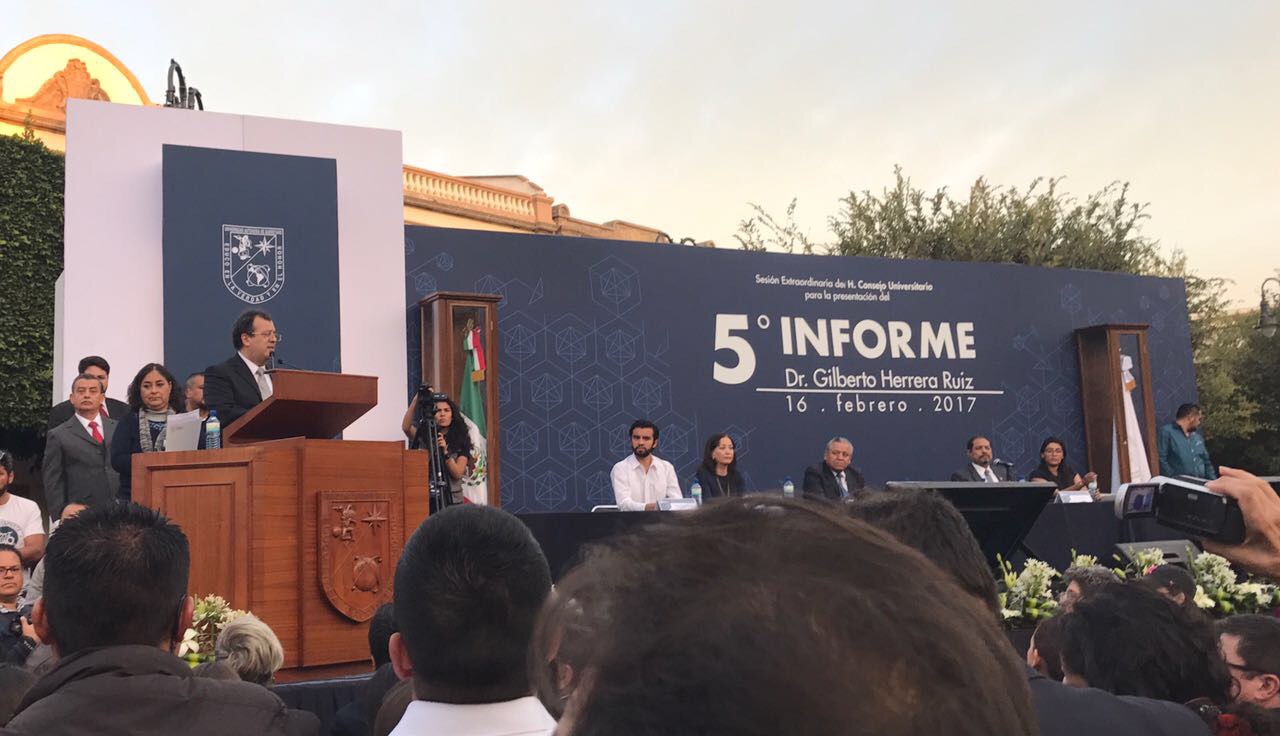 En el marco de su V informe de actividades -celebrado la tarde de este jueves, en plaza de armas- el académico pidió mayor presupuesto para la universidad, al tiempo que, dijo, ofrecería una carta de renuncia a cualquier cargo público.