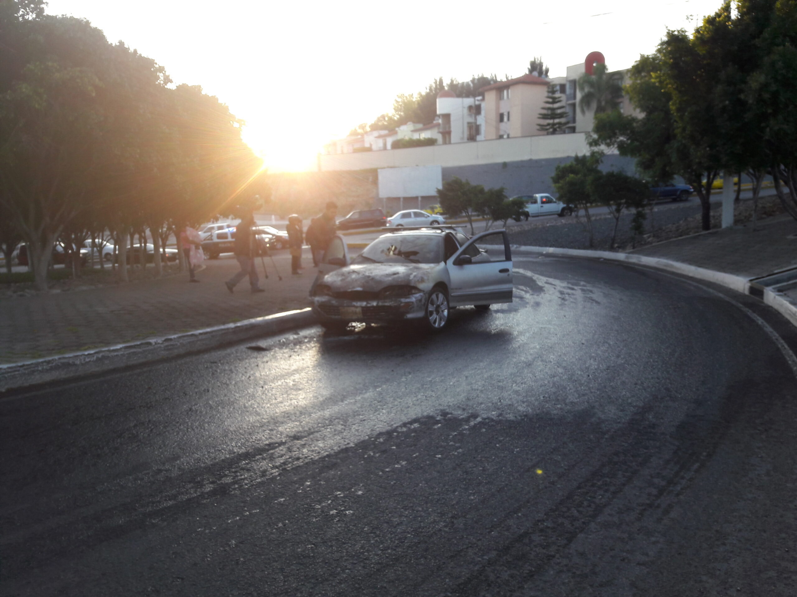 El auto dejo de funcionar y el conductor comenzó a sentir todo caliente «En ese momento saque a mi niña de 5 años que era la que me preocupaba y trate de sacar algunas cosas más pero ya el auto estaba en llamas» narró Enrique.