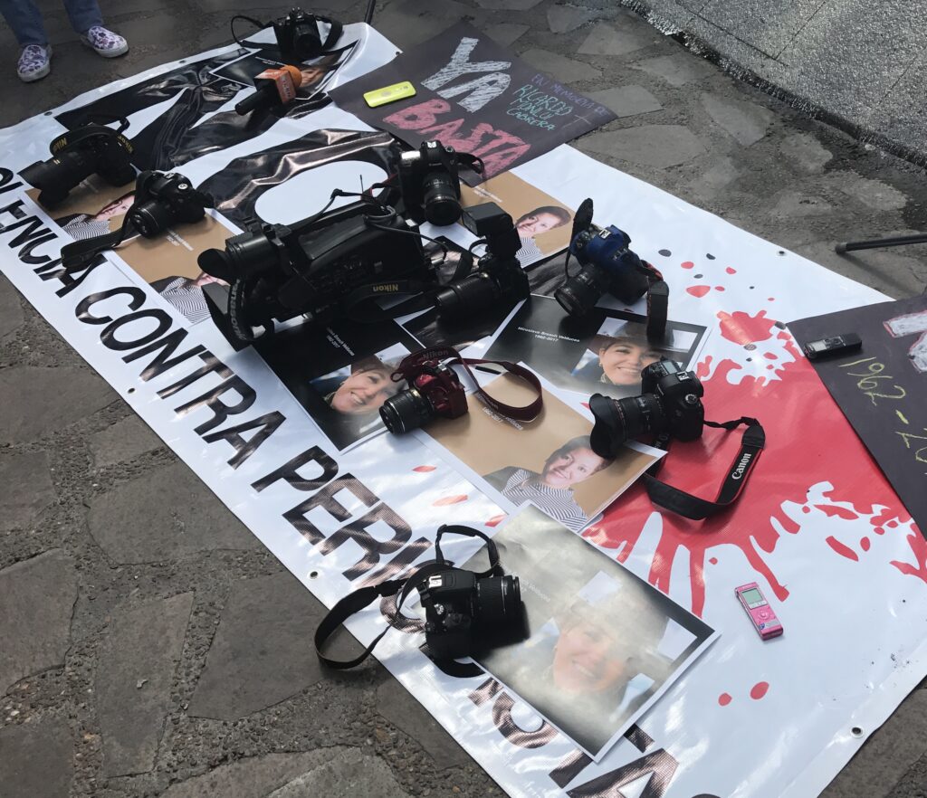 Con pancartas y la leyenda «No más sangre contra los periodistas», Nefi Hernández, Demian Chávez y Mariana Chávez -reporteros y corresponsales- pidieron a la autoridad mecanismos y garantías de protección para el ejercicio de la labor del gremio.