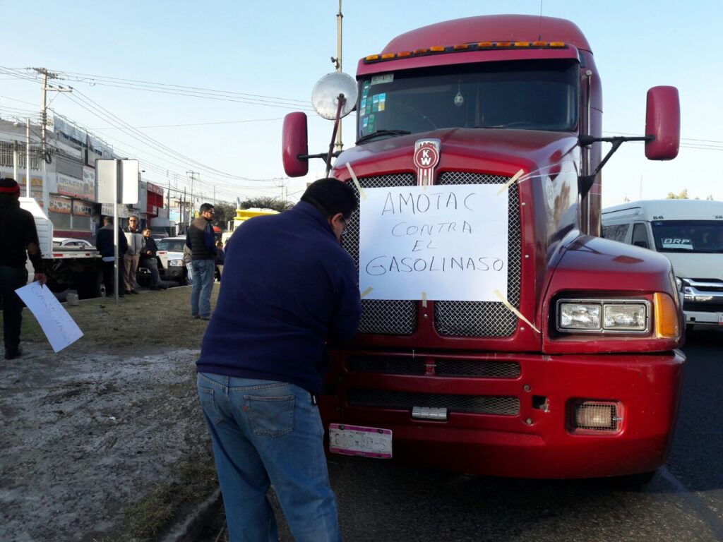Querétaro, 3 de enero.- Como parte de las manifestaciones en contra del aumento de precio del combustible, transportistas del estado de Querétaro se manifestaron de forma pacífica deteniendo sus vehículos en la carretera México Querétaro, y preparando a los transportistas de otras entidades para marchar hacia la ciudad de México.
