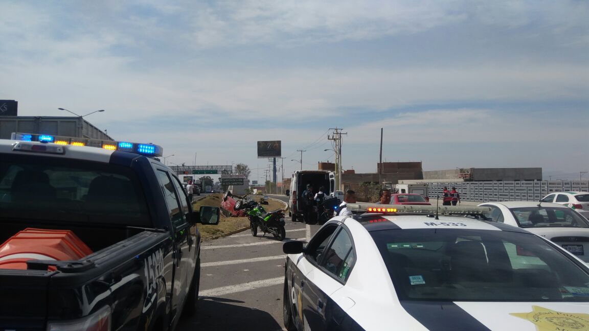 Querétaro, 19 de enero.- Aparatoso accidente, con una volcadura incluida, se registró en la carretera México – Querétaro, a la altura de avenida Cimatario, en la capital del estado.