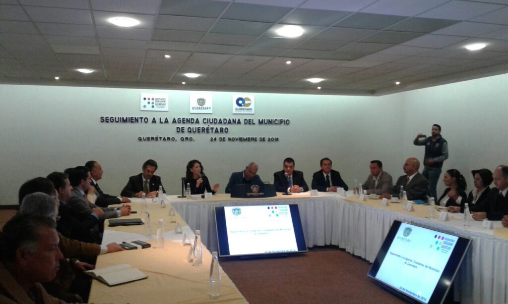 Querétaro 24 de noviembre.- Se reúnen los integrantes del Observatorio Ciudadano con el Municipio de Querétaro, tocando temas en cuanto a transparencia, acciones y programas para la prevención del delito, mejora regulatoria, entre otros.