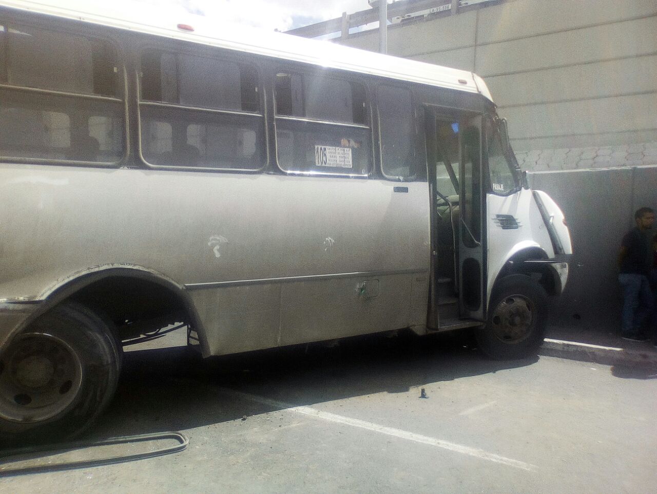Este accidente tuvo lugar en los carriles laterales de 5 de febrero antes de llegar al cruce con Epigmenio González, en dirección al norte de la capital, cuando el conductor de la unidad perdió el control, lo que ocasionó que se fuera en contra del muro de seguridad de una empresa de gas natural.