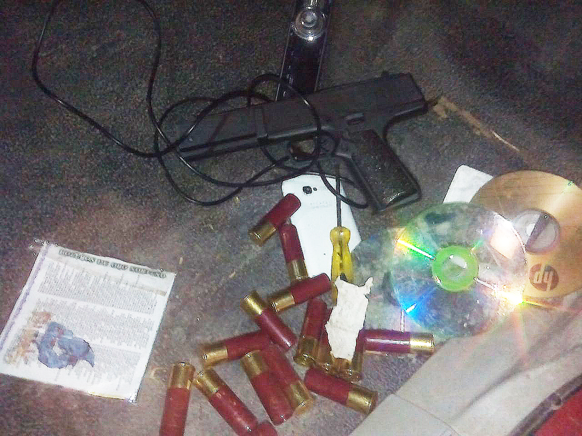 Logrando el aseguramiento de uno de los sujetos reportados (menor de edad), quien en el interior del vehículo en el que se daba a la fuga, se encontró una pistola hechiza, cartuchos para escopeta así como hierba verde con las características de marihuana, misma persona fue una de las que se identificó como quien disparó a la llegada de los oficiales.