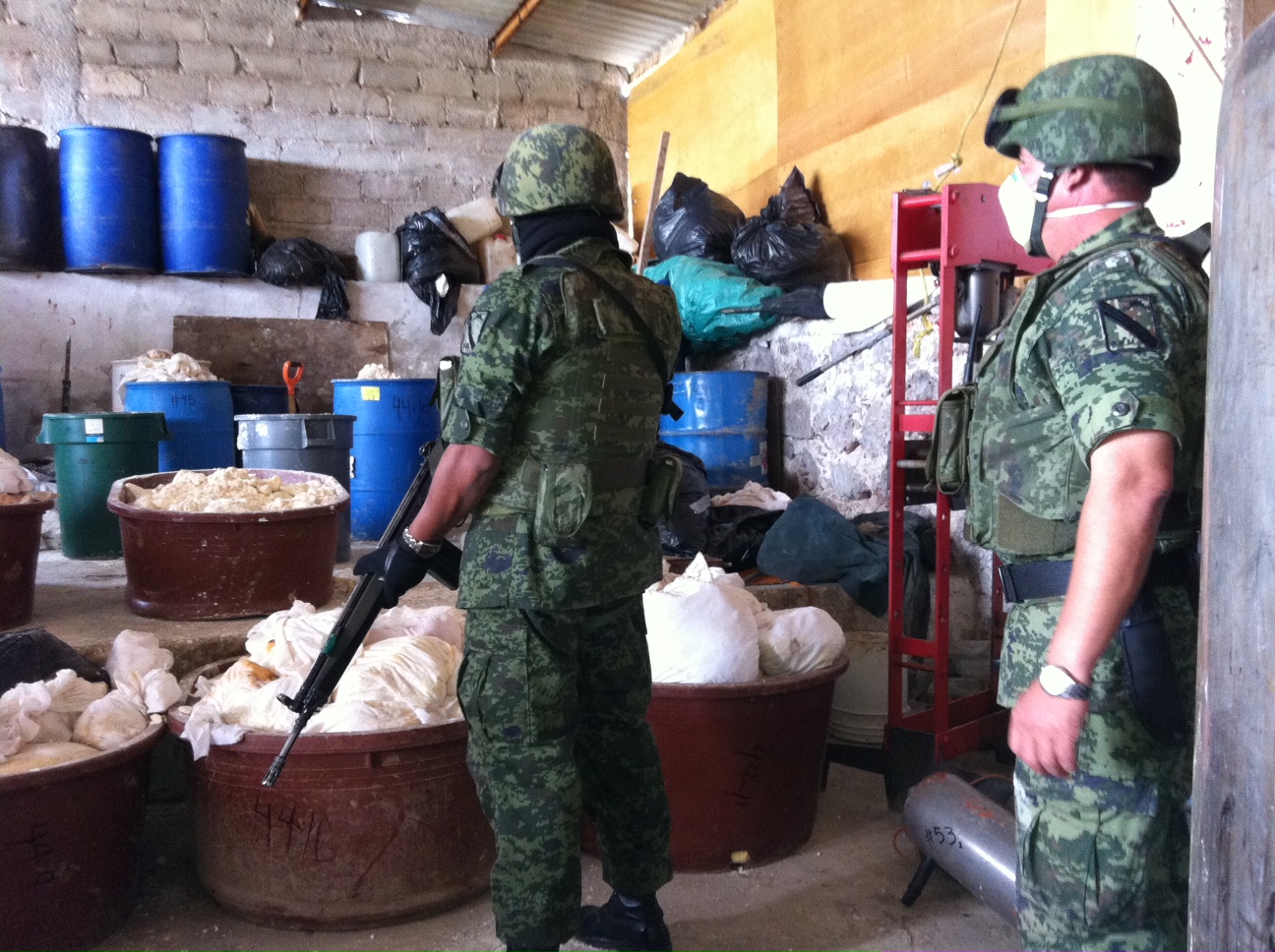 En estos sitios han sido localizados desde precursores para la elaboración de droga, principalmente cristal, además de herramienta y tambos para su almacenamiento.