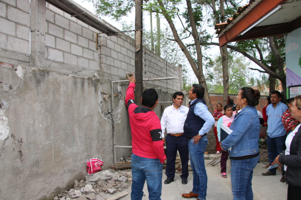 En el Preescolar “José Vasconcelos” de El Sauz Alto, el Alcalde informó a los maestros y padres de familia, respecto a la obra que se está ejecutando, que consiste en la construcción de la barda perimetral, con una longitud de 33 metros lineales, que beneficiará a 180 alumnos de este plantel.