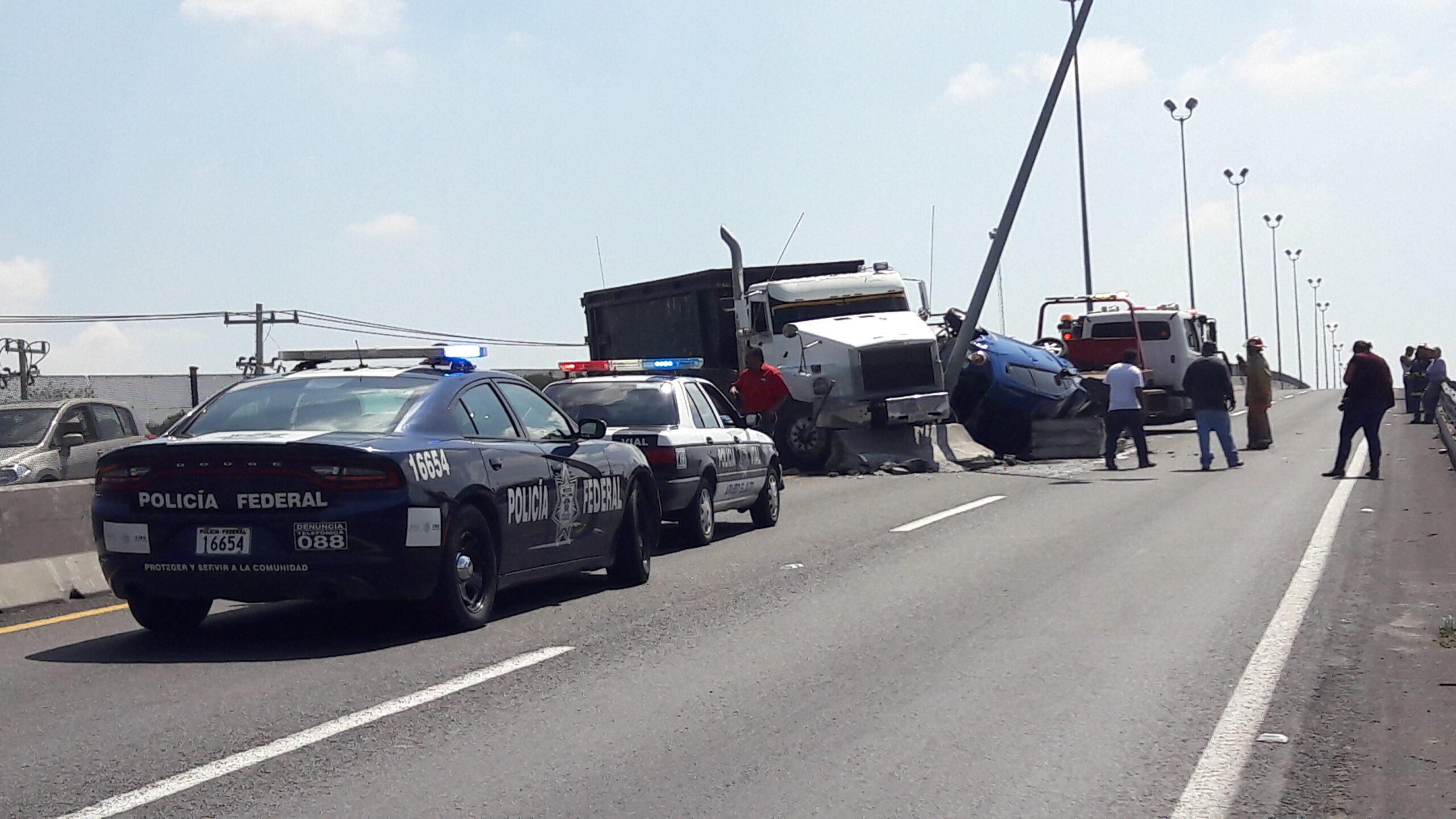 El accidente ocurrió cuando un tráiler no pudo detener su marcha al quedarse sin frenos, por lo que embistió a cuatro vehículos para después chocar contra el muro de contención y derribar un poste de alumbrado público.