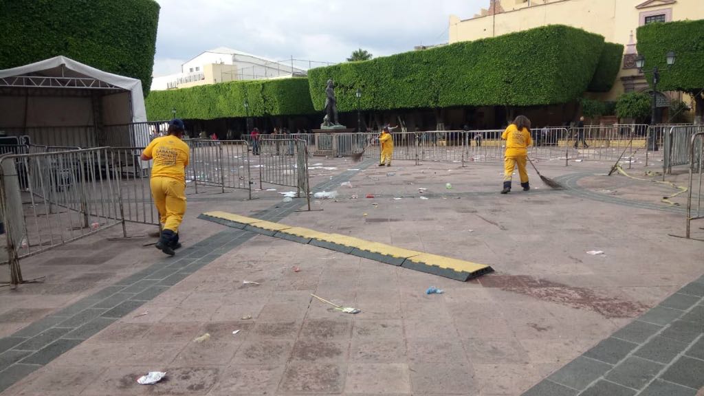 Cuando se le preguntó al secretario de Servicios Públicos del Municipio de Querétaro, Alejandro González respecto al tema, apuntó que no hicieron contrato de limpieza, el cual es requerido obligatoriamente cuando se presta una plaza pública para la realización de un evento.