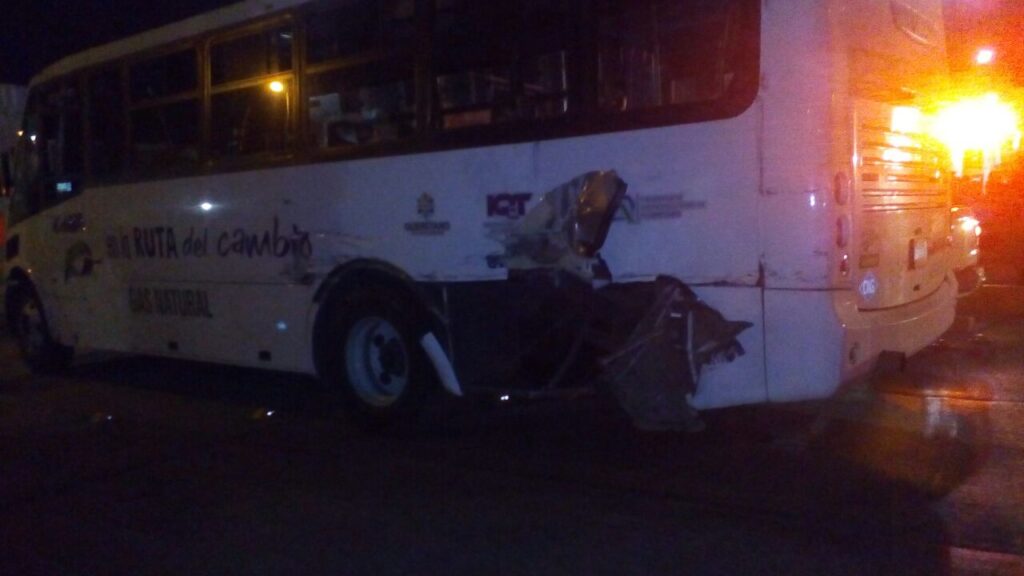La unidad de transporte público circulaba sobre Boulevard Bernardo Quintana y al llegar al cruce de acceso 3, el operador debió detenerse en el cruce de las vías, pensó que tenía espacio para maniobrar y pisó el acelerador.