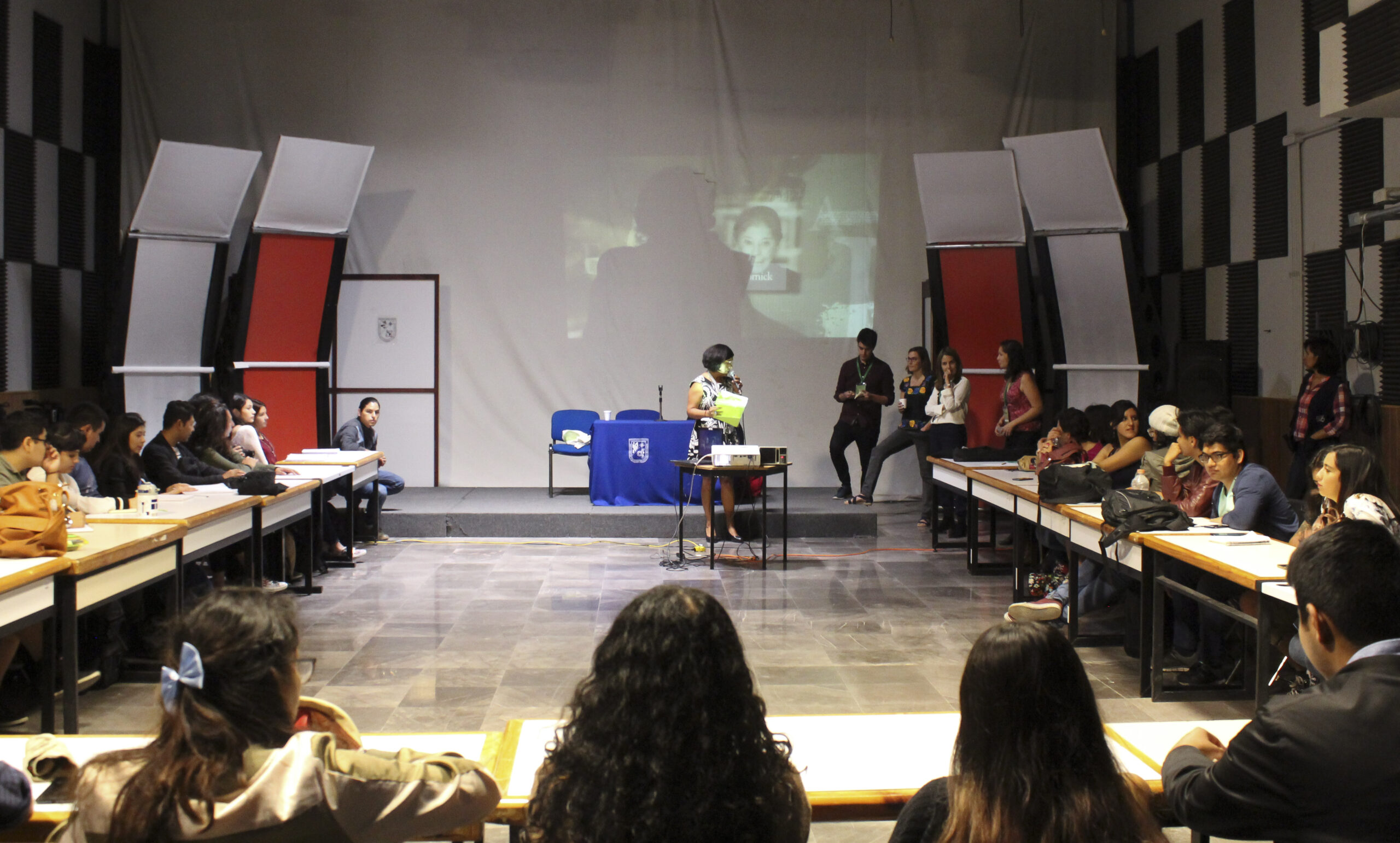 Otras de las actividades que se realizaron en el auditorio de la FCPS, fue la Conversación con la escritora mexicana Jazmina Barrera, quien habló sobre su trayectoria, al ser editora y socia fundadora de Ediciones Antílope y docente en la Universidad de Nueva York.