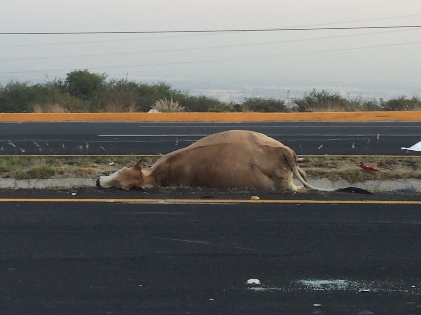 En este accidente no se reportaron personas lesionadas, pero sí considerables daños materiales y la muerte del animal, el cual caminaba sobre los carriles de circulación, el conductor del primer auto no alcanzó a distinguirlo e hizo que saliera despedida hacia el camellón central de la vía.