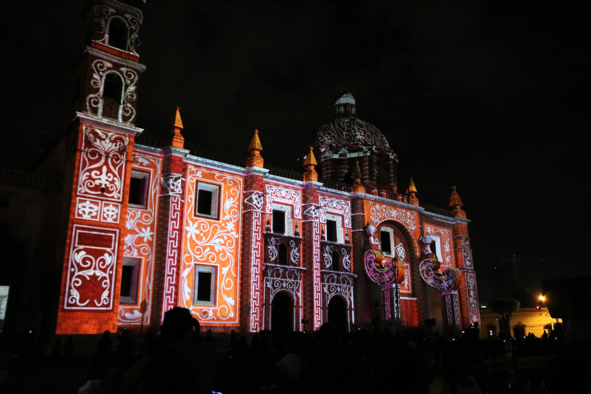 Querétaro, 18 de diciembre.- Este espectáculo nocturno tiene como principal objetivo ofrecer un novedoso producto turístico que permita diversificar la oferta del Centro Histórico de la Ciudad Capital, a través de la proyección audiovisual sobre la fachada del Templo de Santa Rosa de Viterbo.