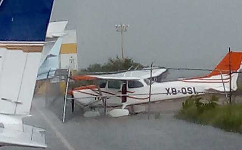Además, dentro del aeropuerto, el viento que acompañó la lluvia arrastó una avioneta hasta la zona de talleres.