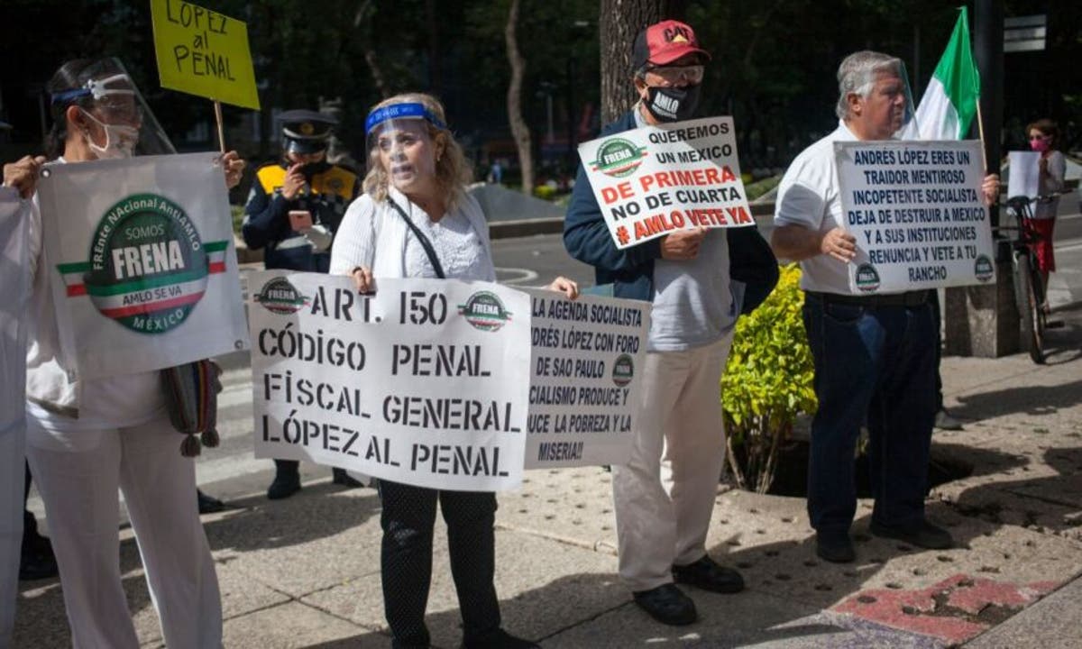 Los integrantes de FRENA se encontraban con pancartas que decían «Fuera López» y «La silla está vacía». Mientras que los simpatizantes de AMLO respondian con gritos de «Es un honor estar con Obrador» y «Fuera Pancho».