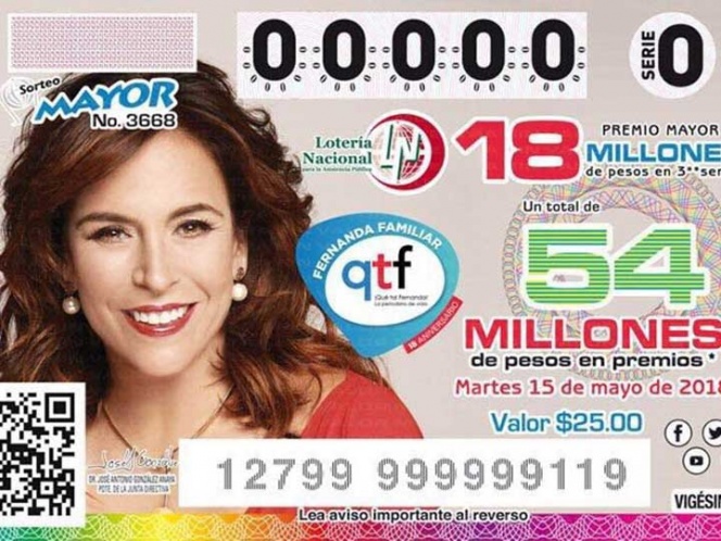 La Lotenal detalló que son 3 millones 600 mil cachitos con su imagen los que se distribuyen por toda la República Mexicana a través de nuestros billeteros ambulantes y expendios de lotería.