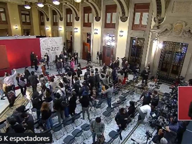 21 febrero.- El presidente López Obrador pidió casi al término de su conferencia matutina que los reporteros y demás asistentes en Palacio Nacional salieran debido a que se activó la alerta sísmica.