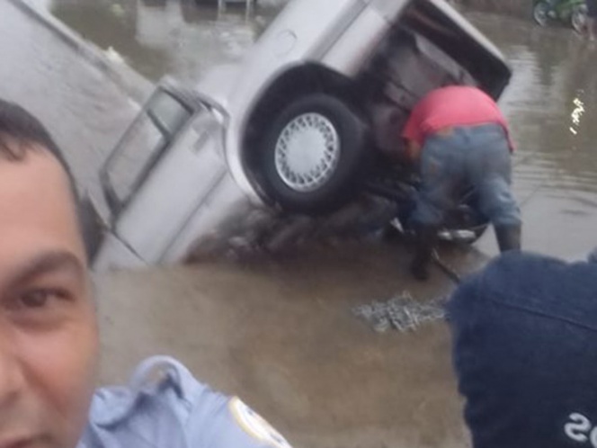 05 junio.- Un policía de Tránsito de León, Guanajuato, se tomó una fotografía justo en el lugar y el momento donde una persona perdió la vida a causa de la tromba que azotó a la ciudad.