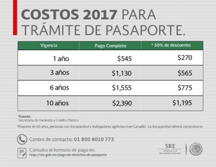 Ciudad de México, 2 de enero.- La Secretaría de Relaciones Exteriores (SRE) detalló que, desde este 1 de enero de 2017, los costos del pasaporte aumentaron.