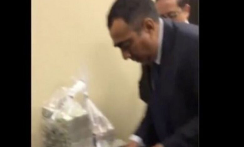 En las imágenes que circulan en mensajes de las redes sociales Twitter y Youtube, y que se adjudican a Juan Jesús Lozoya Austin, hermano del indiciado, se aprecia a Rafael Caraveo Opengo, exsecretario técnico del Senado, recibiendo bolsas con billetes.